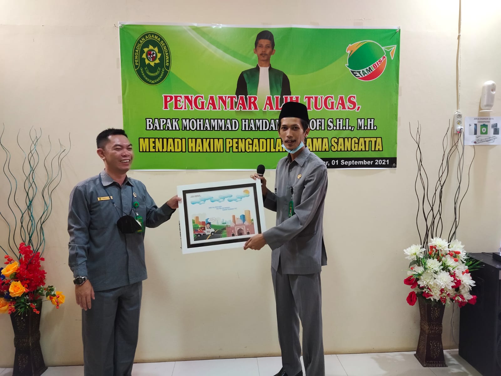 Sendawar – Pengadilan Agama Sendawar menggelar acara pengantar alih tugas/pelepasan Hakim PA Sendawar, Bapak Mohammad Hamdan Asyrofi, S.H.I., M.H. yang nantinya akan bertugas sebagai Hakim di Pengadilan Agama Sangatta, pada hari Rabu, 1 September 2021. Acara pelepasan tersebut dimulai pada pukul 09.00 WITA, bertempat di ruang tunggu PA Sendawar, dipimpin oleh Bapak Samsul Bahri, S.H.I. selaku Ketua dan dihadiri oleh Wakil Ketua, Hakim, Pejabat Struktural, Pejabat Fungsional dan Pegawai PA Sendawar.