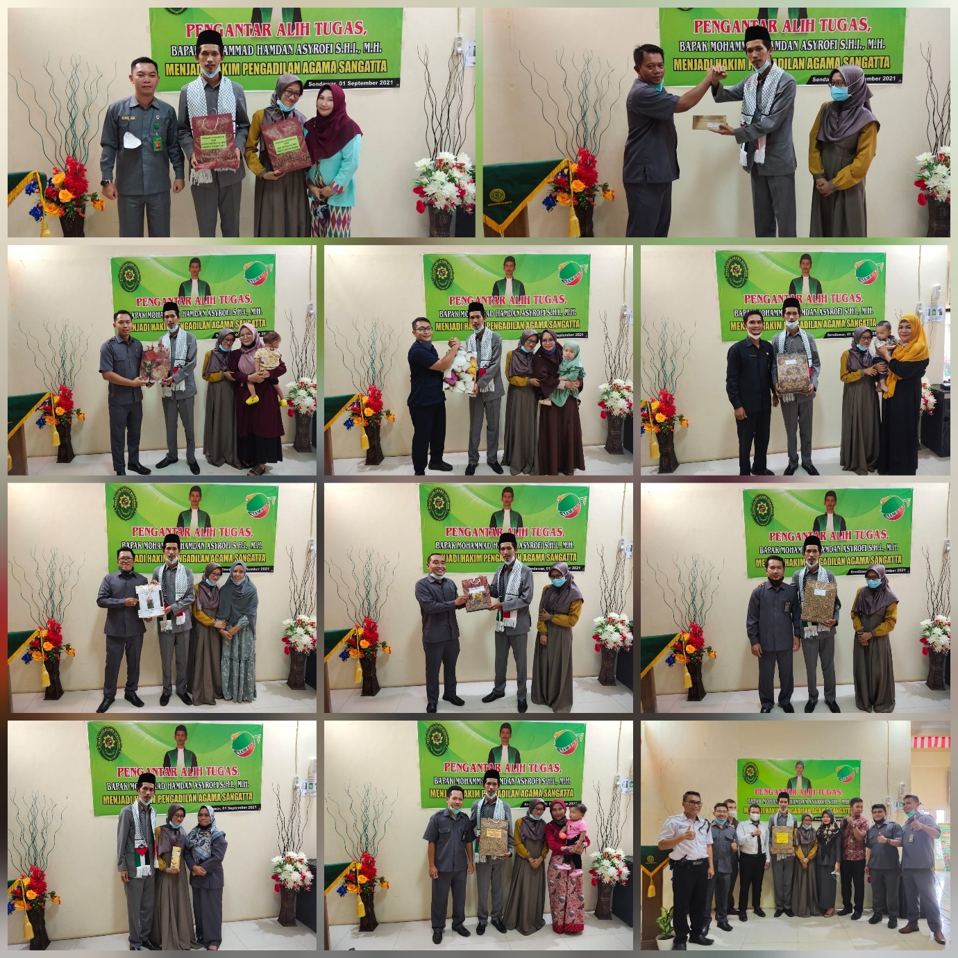 Acara dilanjutkan dengan pembacaan doa oleh Bapak Salamuddin, S.Ag., dilanjutkan dengan menampilkan video perpisahan “Best Memory Bapak Hamdan di PA Sendawar “ , terasa sangat khidmat dan mengharukan bagi keluarga besar PA Sendawar pada saat menyaksikan video tersebut. Acara kemudian dilanjutkan dengan penyerahan cendera mata dari PA Sendawar kepada Bapak Mohammad Hamdan Asyrofi, S.H.I., M.H. oleh Ketua PA Sendawar dan juga pemberian kenang-kenangan dari seluruh aparatur PA Sendawar. Acara ditutup dan diakhiri, seluruh aparatur PA Sendawar pun berkumpul untuk foto bersama, seluruh rangkaian acara ini dilaksanakan dengan tetap mematuhi aturan pemerintah terkait dengan protokol pencegahan Covid-19. (pnc)