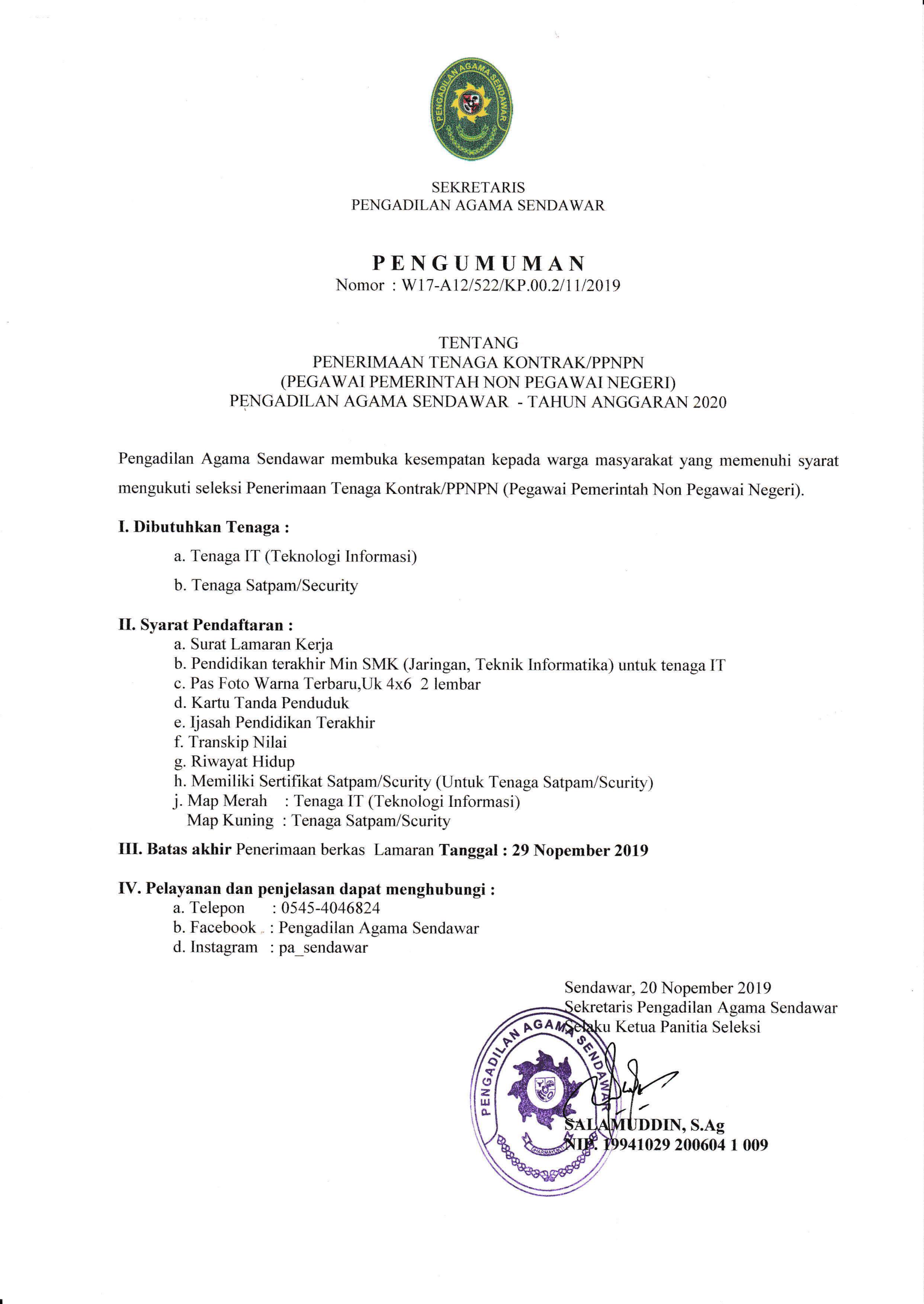 Nomor : W17-A12/522/KP.00.2/11/2019.